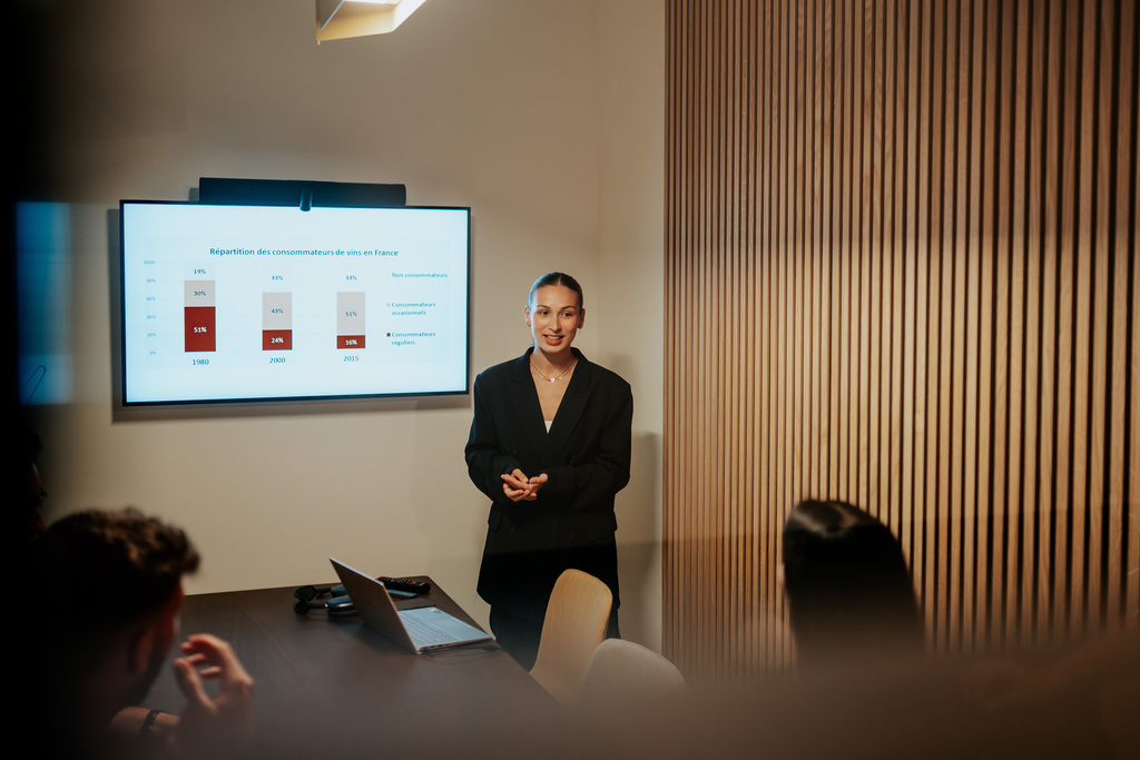 Chez WineHub, chaque salle de réunion est pensée pour répondre à des usages spécifiques. La salle Cabernet, avec sa terrasse attenante, est idéale pour les comités de direction. La salle Chardonnay, plus intimiste, convient parfaitement aux réunions en petit comité ou aux visioconférences. La salle Syrah, avec son accès au rooftop végétalisé, permet d’alterner entre travail et moments informels.